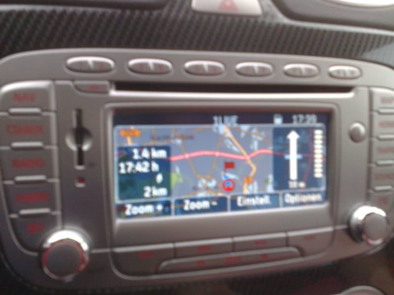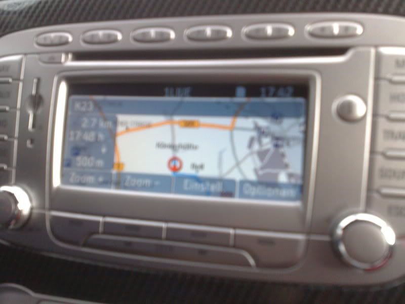 Wie versprochen die Bilder, teilweise nicht ganz scharf aber ich glaube du siehst was du sehen wolltest. Die Anzeige im Kombi reicht eigentlich schon völlig aus, Richtungspfeil, laufender Balken bis zur Abbiegestelle, Strassenname. Das gleiche sieht man auch nochmal im Radiodisplay oder eben nach Wunsch Titelliste der CD, Radio oder eben die Karte die man mit den Zoom Tasten super einstellen kann ob du nun sehen möchtest wie die Strasse um die Ecke heisst oder auch ob in 20 km Entfernung eine Autobahn vorhanden ist. Die zusätzlichen Pfeile im Radiodisplay sowie den Strassennamen kannst du auf Wunsch auch ausblenden.